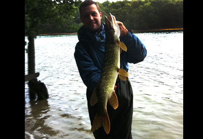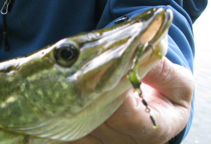 Schön ist es, bei der Methode die Rute die ganze Zeit über in der Hand zu halten und sofort auf die Attacke reagieren zu können. Sehr schonend ist das zudem für den Fisch, die Haken sitzen zu 90 Prozent im vorderen Teil des Hechtmauls. An einem Baum konnte dann kurze Zeit später Nummer zwei überlistet werden.