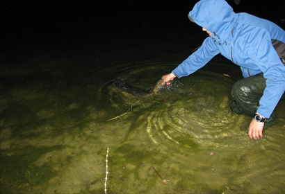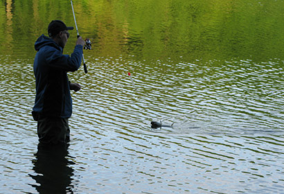 Eine Wathose ist sehr hilfreich. Man hat somit immer den Vorteil, Schilfkanten und interessante Spots vertikal abangeln zu können.