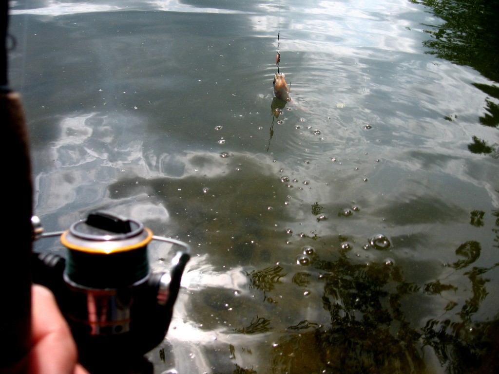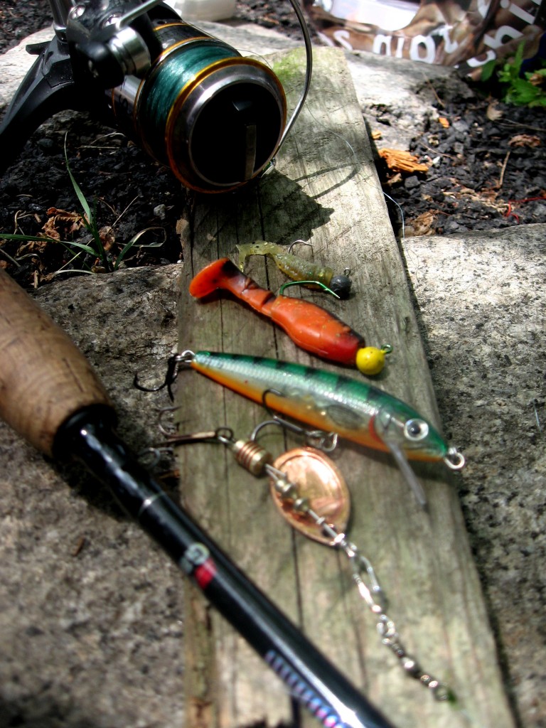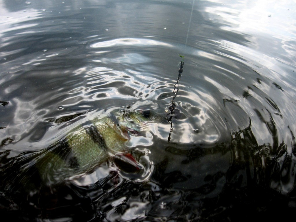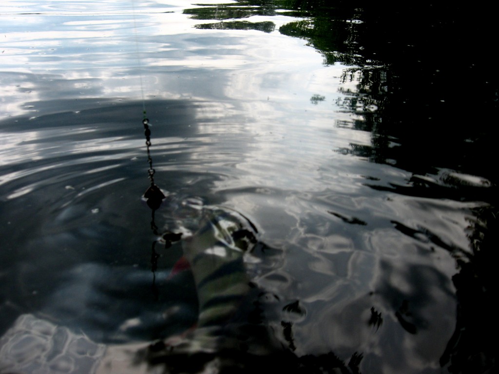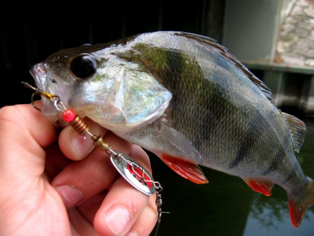 Ok ok! Das ist natürlich alles Unfug! Gehen wir zu den Fakten zurück, nehmen wir eine der abertausenden Brücken dieser Welt, vielleicht einfach die zur gut bürgerlichen Gegend am Berliner Wannsee namens „Schwanenwerder“, eine Verbindungsbrücke zwischen Wannsee und Havel. Beide sind für Berlin wirklich große Gewässer. Die Brut, gerade Mal halb so lang wie ein kleiner Finger, sucht sich genau solche Gebiete aus, um in Ruhe heranwachsen zu können. Aber eben auch genau dort sind sämtliche in dem Gewässer vorkommende Raubfischarten zu erwarten. Die Brut stellt sich direkt an den Spundwänden ein. Man findet sie in allen Wasserschichten vor. Ob grundnah oder direkt unter der Oberfläche, Nahrung für Räuber ist allgegenwertig. Das lässt uns in Bezug auf die Köderwahl ein großen Spielraum. Es hängt dabei ganz von der Gier der Räuber ab, in welcher Wasserschicht wir unsere Köder präsentieren. An einem Tag wie diesem im Juni reizten vor allem kleine Spinner mit einer Lauftiefe von max. 50 cm die Barsche zum Biss. Jedoch waren Twitchbaits und kleine Twister am Jig ebenso erfolgreich.