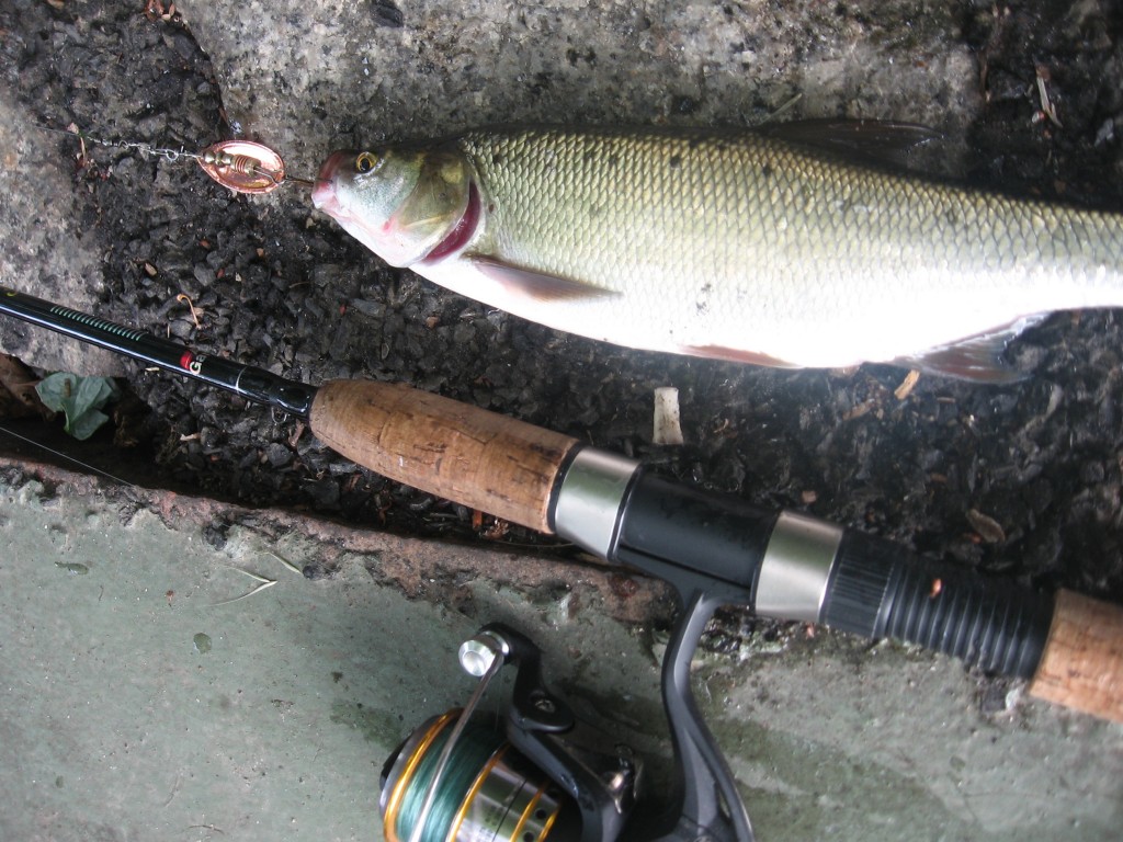 Ebenfalls als sehr vielversprechend in einem Brückenbereich gelten die Ausläufe. Dort ließen sich wunderschöne Döbel und Rapfen beim Sonnenbad beobachten. In Grundnähe ist dann meist mit Barschen und Zandern rechnen.Wie schon erwähnt, haben alle der vorgestellten Köder gefangen, doch wie so oft fängt die alte Schule wieder einmal am besten: Kleine kupferfarbende Mepps machten die Barsche besonders wild.