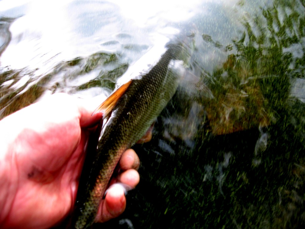 Und um nochmal auf die sonnenbadenen Rapfen und die Bereiche des Auslaufes zu kommen: Alles, was schnell und dicht unter der Oberfläche läuft, dem kann der Torpedo unserer Gewässer nicht wiederstehen. So gab es auch zwei Rapfen, die den Mepps heftig attackierten und am leichten Gerät eine Menge Action lieferten.