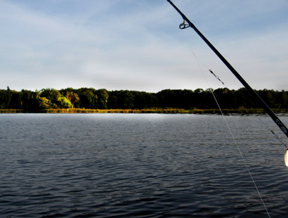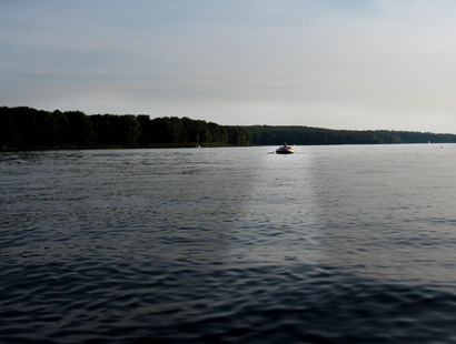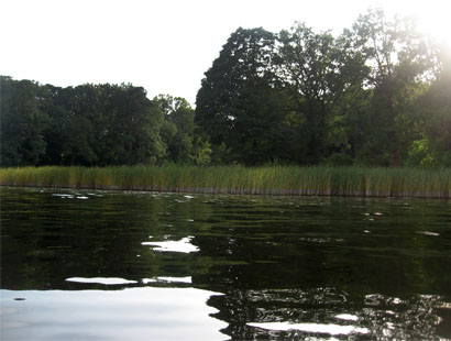 Zu erwähnen ist , dass es von dort aus in Richtung Norden immer flacher wird. Das mit Holz überfüllte Ostufer wird immer mehr zum sandigen, strandigen Bereich. Immer wieder taucht etwas Schilf auf. Besonders Aalangler können dort im Flachwasser wahre Sternstunden erleben. Barsche sind ebenfalls in großen Schwärmen anzutreffen. Oft gab es Doppeldrills mit Happyend.Jedenfalls muss man sagen, dass es, um so mehr es nach Norden ging, monotoner geworden ist und vor allem weniger Fisch gab.