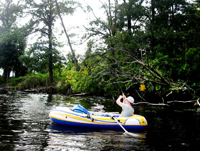 Ruder also ins Wasser und ab Richtung Westen. Dort war es ähnlich wie am Anfang: viele versunkene Bäume und schöne flache Buchten, etwas Kraut und viel Fisch.