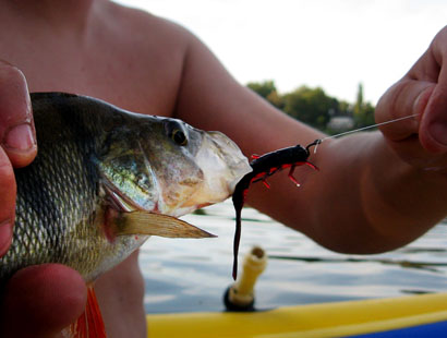 Schnell waren die ersten Stachelritter gelandet. Zugegeben, mit seinem T-Rig hat er ganz klar besser gefangen. Aber auch die oberflächennahe Angelei brachte viel Fisch.