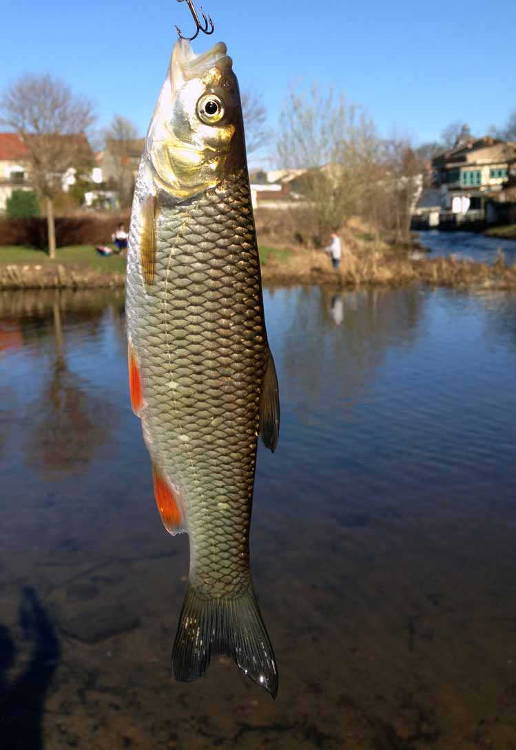 Kurz vor den ruhigen Flachwasserbereichen müssten doch Stachelritter anzutreffen sein. Doch es zeigte sich einfach keiner. Erst ein paar Würfe in die Strömung hinein brachten uns die ersten Überraschungsgäste: Döbel. Wow!