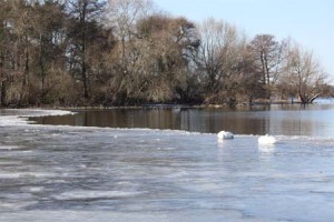 Am Uferbereich treiben rege die Eisschollen, doch die Fahrtrinne und die für uns interessanten tiefen Stellen sind komplett eisfrei.